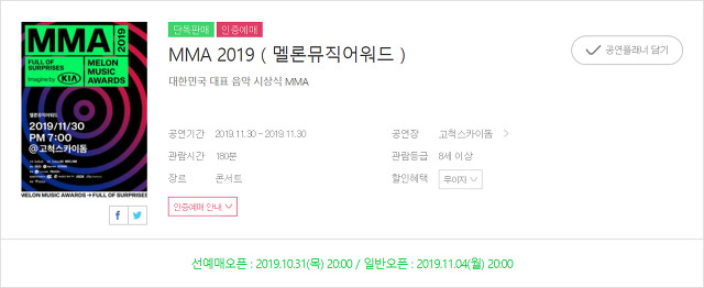 2019 멜론뮤직어워드(MMA) 티켓팅