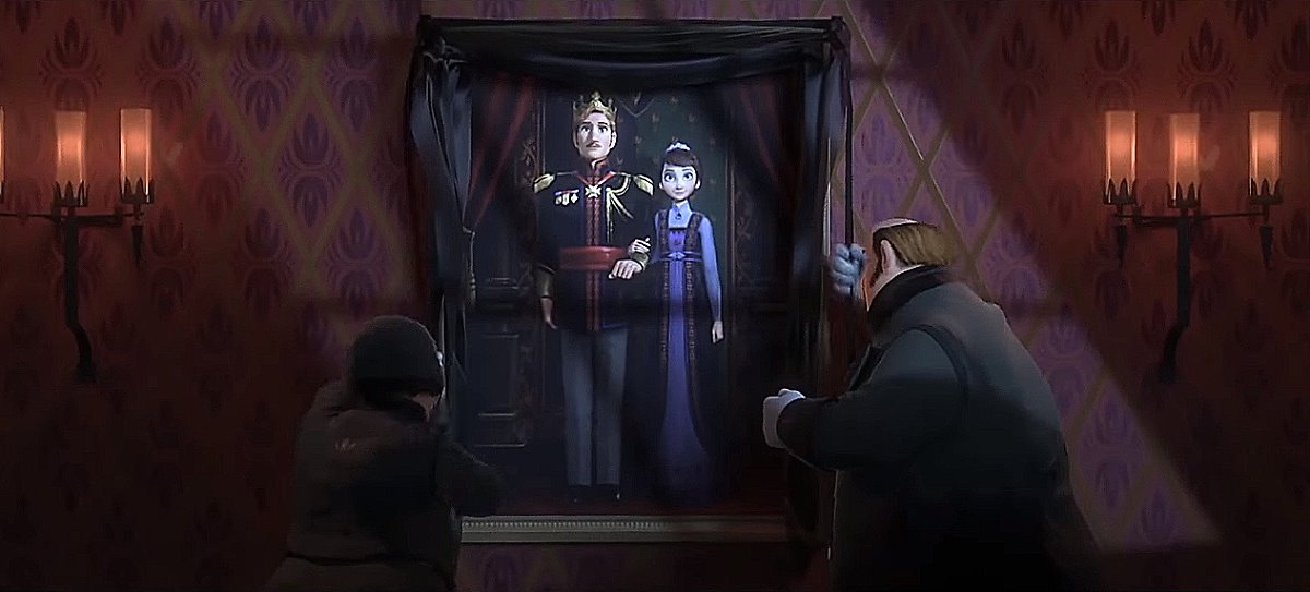이들은 화합하는 듯 보였으나 서로에게 칼을 겨눈다. 어쩌면 어떤 세력에 맞서 하나로 뭉쳐 싸우는 것을 의미하는 것일 수도 있겠다. 어느 쪽으로 해석하든 아렌델과 노불드라, 안나와 엘사의 부모님이 어떤 커다란 사건에 휘말려있었던 것임은 분명해 보인다. 결국 이 모든 사건이 벌어진 마법의 숲이 엘사와 안나를 소환한 이유. 노불드라와 아렌델의 피가 반반 섞인 이들이 마법의 숲에서 일어난 오랜 갈등을 해결하고 화합할 수 있는 인물들이어서가 아닐까.
