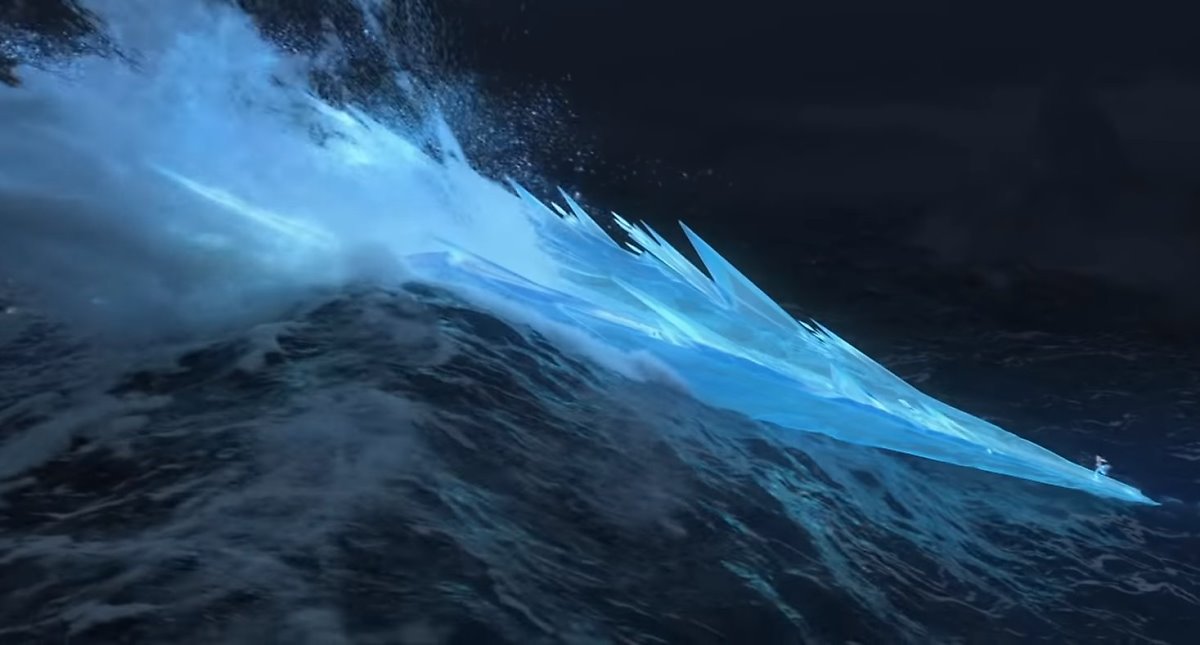 예고편에서 가장 많이 등장한 건 물의 정령, 나크다. 디즈니는 나크를 “바다의 힘을 이용해 숲의 비밀을 지키는 신화 속 물의 신”으로 설명했다. 예고편엔 엘사를 심판하는 듯한 나크의 모습, 그리고 나크를 마법의 힘으로 제압하고 그 위에 올라타 바다를 탈출하는 엘사의 모습이 담겼다.