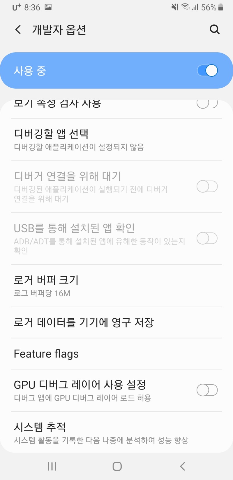 5. 개발자 옵션이 생겼습니다. 클릭 합니다.
